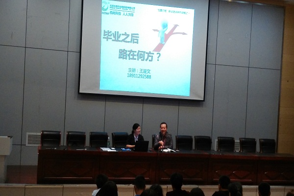 王亚文经理首先结合自己的招聘经历,分析了目前大学生在求职过程中普遍存在的现象和问题。如在校期间没有对自己进行有计划的、系统的职业训练,更没有明确的就业目标,缺乏正确的职业规划设计。他说,大学生在校期间要充分认知自我,我是谁?现在会做什么?在校期间应该强化锻炼什么?毕业后想做什么等一系列问题,应该时刻提醒自己还欠缺什么。根据自己的兴趣、爱好和特长提前认清行业、职业、企业之间的关系,明确自己的目标方向,通过自我训练,有意识的提升自己的能力。讲座中,他用大学生素质模型体系向同学们展示了专业素质和内在素质的关系,希望同学们要强化基本道德素质,增强语言沟通能力。同时,他还解答了企业在招聘过程中如何识别人才、大学生应该准备什么样的简历最能吸引企业的注意等一系列学生关心的问题。