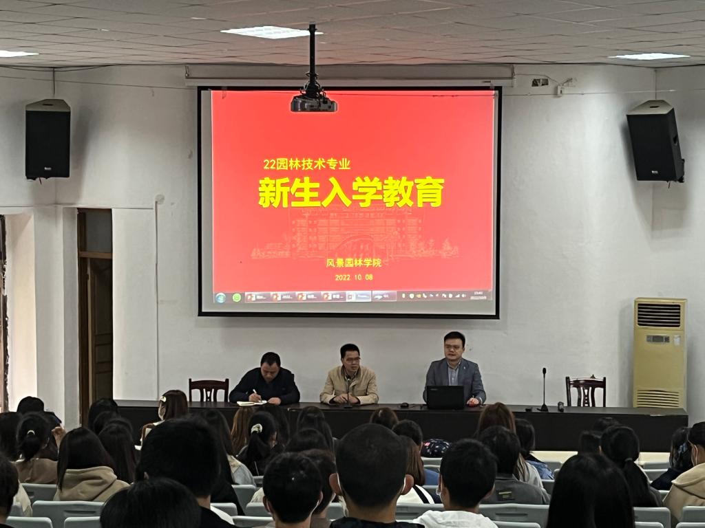会上,风景园林学院党总支书记熊伟代表风景园林学院师生欢迎2022级新生的到来,并为园林技术专业和林业技术专业的新生们介绍了这两大特色专业的发展现状。他希望学生以学习为主,合理规划大学生活和职业生涯,通过全面发展,努力提高自身综合素质,正确树立自己的人生目标,