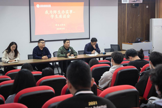 为认真贯彻落实学院党委关于转变工作作风、提高工作效能、推动高质量发展的安排部署,10月27日下午,学生工作处在创客空间307会议室召开“我为师生办实事”学生座谈会。