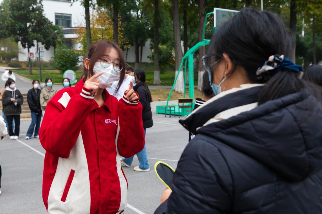 活动包含“破冰活动:认识你真好——大风吹”“分组活动:你是我的有缘人——随机报数”“协作活动:你中有我——团队合作”“集体力量活动:速度大比拼——风火轮”“协作活动:你是我的眼——你比我猜”等五个环节。活动中,同学们积极投入,热情参与,团队合作,展示自我,特别是在速度大比拼——风火轮活动环节,各小组提前演练,商议战术,团结协作,你追我赶,获胜时拥抱庆祝,失败时相互鼓励,在不知不觉收获了友谊,体验成功的快乐。