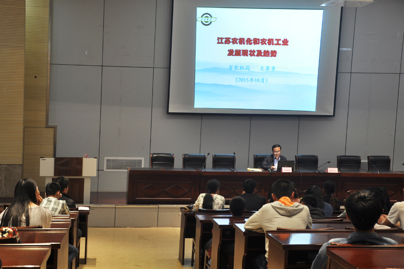 10月14日下午,江苏省农业机械管理局党组成员、副局长王翠章应邀为永利官网机电工程系100余名农业机械应用技术专业师生作了题为“江苏农机化和农机工业发展现状及趋势”的报告,学院周兴元副院长出席并主持报告会。
