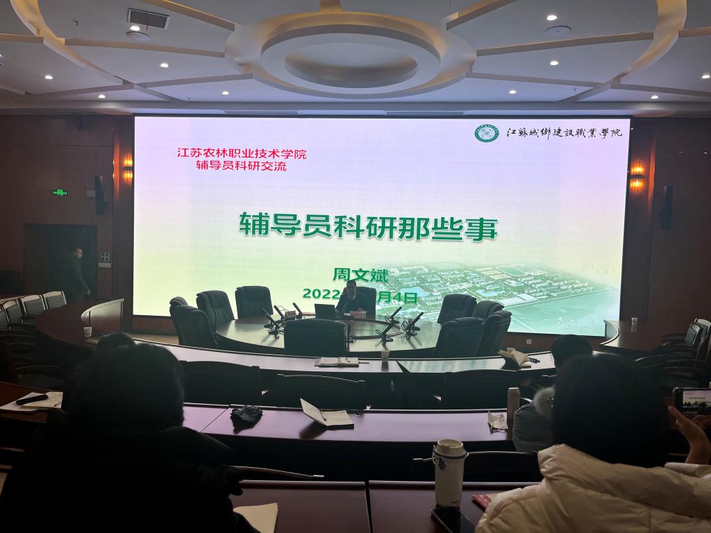 江苏城乡建设职业学院党委委员、副院长陈寿根从选好题、多积累、把握时机呈现三个方面为辅导员们分析了为什么要做科研以及怎么样做科研,鼓励辅导员们要把科研应用到工作中去,提升工作品质,实现课题研究的本真价值,并在实践中丰富成果、提升本领。江苏城乡建设职业学院团委副书记周文斌从自身破茧到破冰再到破局的历程出发,分享了自己如何申报课题、如何选取研究方向以及遇到科研瓶颈时如何调整方向的经验。