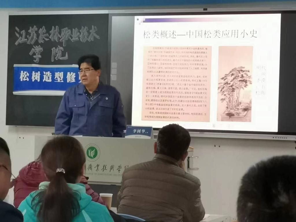 会上,李教授以《松树造型修剪》为题,从造型名松鉴赏、人工培育造型松、造型松整形修剪技术、黑松短叶修剪法等方面介绍了松树修剪相关知识,分享了他在松树造型与松石景观营造方面的实践案例。随后,师生一行来到学院盆景园,李教授对松树造型修剪技法进行实操演示,就盆景制作技能的实践教学及盆景园的维护管理与永利官网师生进行了充分的探讨和交流。专业的理论指导、大量的优秀案例、现场的实际实操,让大家收获满满,激发了广大师生学习、探索专业知识的热情。