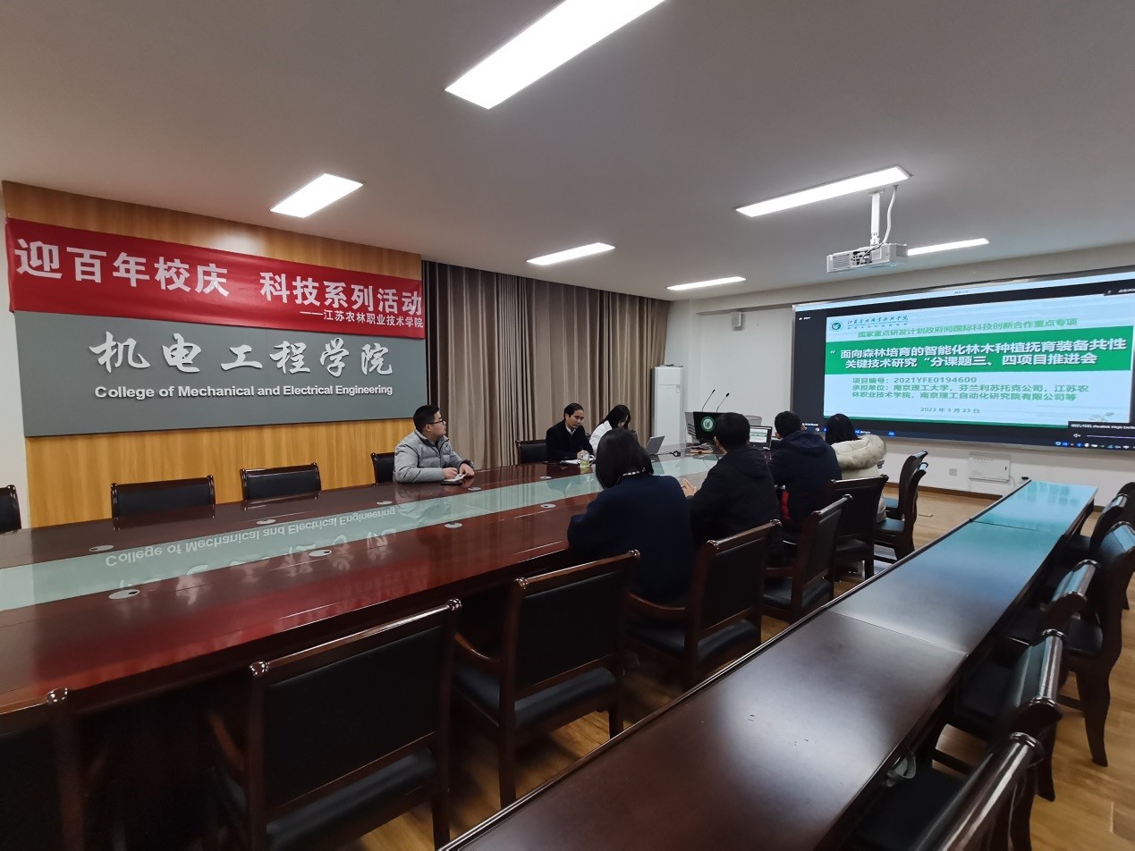 会上,机电工程学院院长刘永华汇报了“面向森林培育的智能化林木种植抚育装备共性关键技术研究”分课题进展情况。南京理工大学彭富明教授对目前项目相关工作进行了总结。芬兰利苏托克公司黄文丁教授介绍了芬兰方工作进度。与会人员就任务的具体细节进行了深入讨论,现场修改了任务方案,为下一阶段工作做准备。