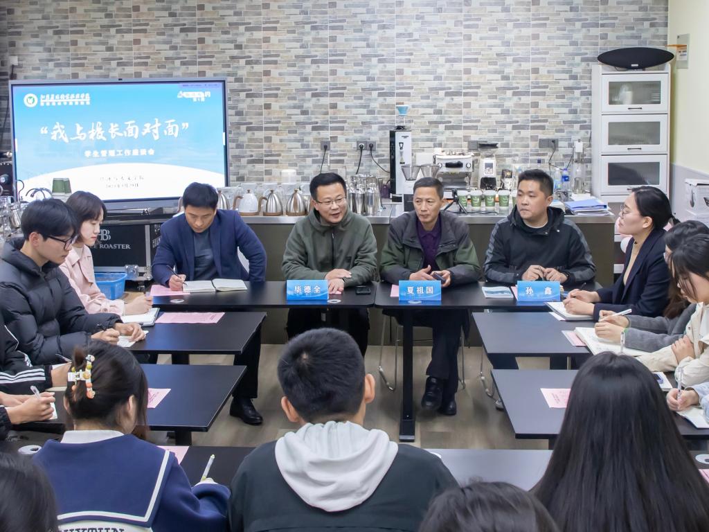 为深入贯彻落实党员“三联系”工作,面对面倾听学生心声,满足学生成长成才的需求,提升管理育人、服务育人的针对性与实效性,3月29日下午,经济与人文学院在经文楼咖啡实训室举办“咖啡有约-我与校长面对面”学生宿舍管理工作座谈会。学院党委委员、副院长毕德全,学生工作处、后勤基建处等职能部门负责同志及学生代表参加了会议。会议由经济与人文学院党总支书记夏祖国主持。