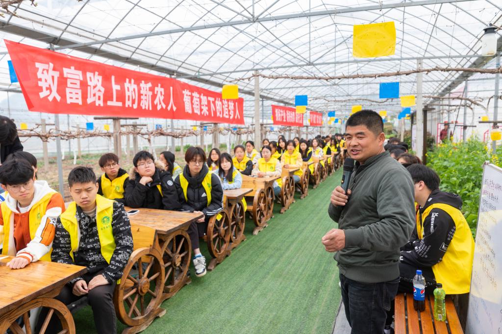 在“田间课堂”,张奎峰以“致富路上的新农人,葡萄架下的追梦人”为题,分享了他从一名“门外汉”成长为“新农人”,用新技术、新观念、新模式,为老农人注入新思维,让老村庄焕发新活力,扎根泥土、奉献大地的追梦历程。张奎峰表示,希望更多农业大学生热爱农村、回到农村、扎根农村、服务农村,做好“三农”代言人,成为助力乡村振兴的“新农人”。