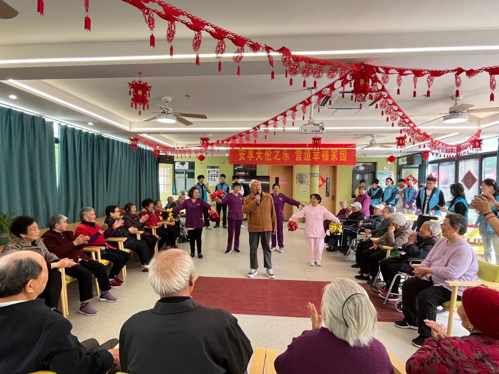 活动中,同学们以两人为一组对接一名老人,帮助老人整理房间内务,陪老人拉家常。随后,根据老人们的兴趣爱好,陪同老人们开展下象棋、打扑克牌等娱乐活动。最后,同学们为老人们表演精心准备的文娱节目,老人们在欢声笑语中度过愉快的周末。