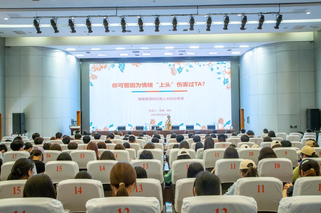为了引导大学生觉察自我与他人的情绪变化,学会和情绪相处,5月25日,由信息工程学院主办,经济与人文学院和机电工程学院承办的“你可曾因情绪上头伤害过TA”心理健康讲座在图书馆报告厅举行。本次讲座邀请了南京林业大学马克思学院心理健康教研室副主任李爽老师作为主讲人。300余名学生参加了本次讲座。