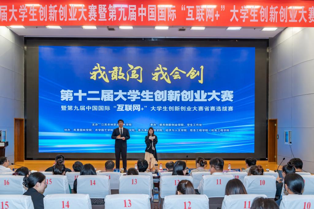 比赛现场气氛热烈,参赛项目团队经过10分钟现场陈述等环节的激烈角逐,最终“斛芨万家——做道地药材助力乡村振兴的引领者”等项目荣获一等奖,“金叶子——小茶苗托起农民致富梦”等项目荣获二等奖,“天南地北庭成林——运营-施工-设计-管养全产业链一站式服务商”等项目荣获三等奖,“猪多多——提高母猪生产效率的得力助手”等项目荣获优胜奖。戴鑫、刘庆新荣获优秀指导教师。