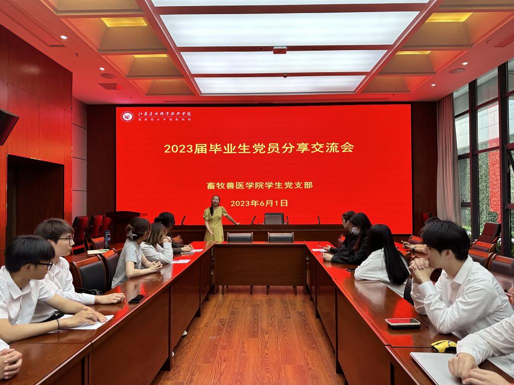 亲切座谈,离别嘱托。畜牧兽医学院举办了毕业生座谈会,重点调研了学院就业率和高质量就业情况。畜牧兽医学院对过去的几年里同学们为学院发展的付出表示感谢,也对同学们在学生工作中获得的锻炼做出肯定,并衷心祝愿各位毕业生以更加昂扬的姿态迎接美好未来,成为回馈社会的栋梁之才。畜牧兽医学院学生党支部还召集全体预备党员,做了在校的最后一次思想汇报。
