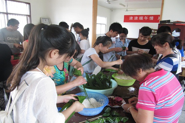 端午节来临之际,畜牧兽医系党总支学生党支部联合马扎里社区党支部于6月18日在句容基地离退休职工活动中心开展了“党群连心、情系端午”联谊会活动。 联谊会上牧医学子与社区五好家庭欢聚一堂一起包粽子,在离退休老人的指导下,同学们很快上手,包的飞快。包完粽子之后同学们给老人们送上了肚皮舞、吉他弹唱等节目,大家在其乐融融的中感受着节日情。最后,同学们把所有包好的粽子分发给在场的居民,也把端午节的祝福送给了他们。