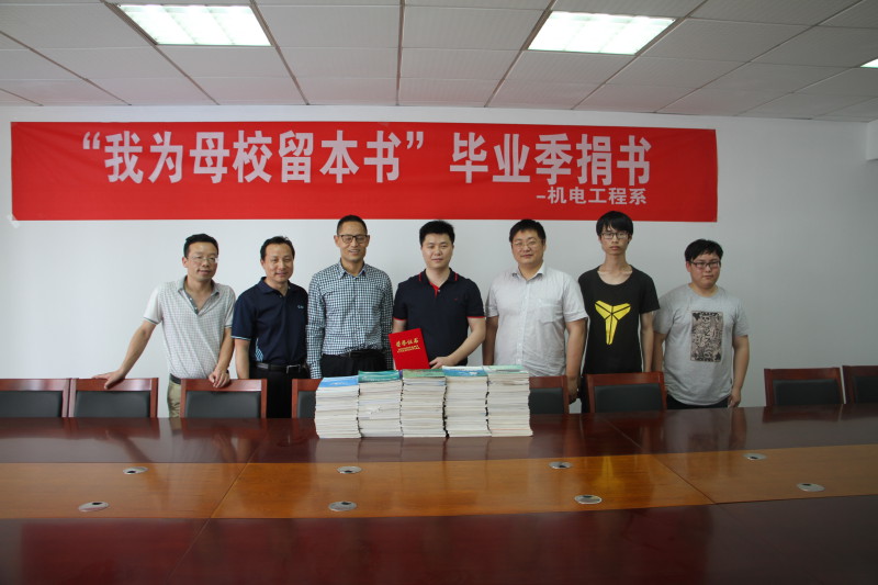 机电工程系联合图书馆开展了“我为母校留本书” 毕业季捐书活动。大家积极响应,前来捐书的同学络绎不绝。6月10号上午,简单而隆重的捐赠仪式在图书馆会议室举行,图书馆张田林馆长对参与活动的毕业生表示感谢,并代表图书馆颁发了捐赠证书,机电工程系田崇峰副书记代表毕业生接受了捐赠证书。后期,图书馆将会把收集到的书籍登记造册,进行编目加工成为馆藏图书后供读者借阅。