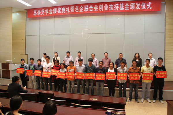 典礼分两个阶段进行。第一阶段,院团委史德林书记首先宣读《关于颁发苏豪奖学金的决定》,与会老师为获奖学生颁发了奖金。随后,双方签订了苏豪奖学金设立协议书,并举行了捐赠仪式。最后,贾仲伟总经理发表讲话,他表示公司被永利官网学生的踏实肯干,吃苦耐劳,认真敬业,工作责任心强以及他们的热诚与冲劲所感动,十分愿意支持学院的教育事业。