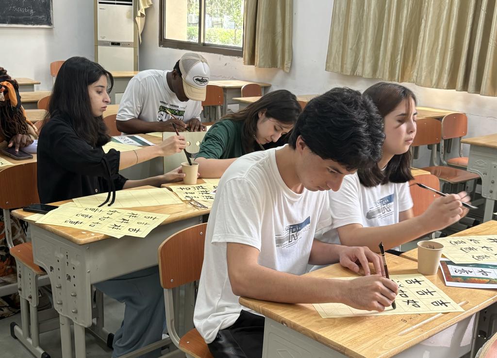 活动在“中国文化观影周”中拉开帷幕。留学生们通过《卧虎藏龙》《末代皇帝》等经典影视作品,直观感受中国的历史脉络与人文风情。在“我与中国”书法活动中,同学们在老师的指导下执笔挥毫,在一笔一划间体验汉字艺术的精深与典雅。