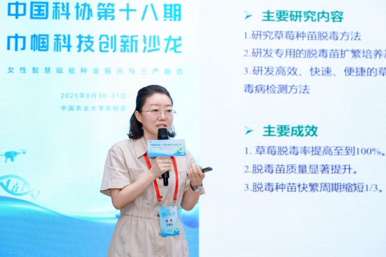本次沙龙通过开幕式、前沿主题报告、圆桌论坛、实地考察调研四个环节,共同探讨农业科技创新前沿方向,为种业振兴与三产融合深度发展,为乡村振兴与生态文明社会建设,注入巾帼智慧与力量。永利官网风景园林学院宋微教授主持圆桌论坛环节“农业创新与产业发展”专题,并就“铁线莲育种技术的创新与突破”为题,做了相关报告。农学园艺学院王媛花教授参加了圆桌论坛环节“种业振兴与前沿攻关”专题讨论,并以“草莓组织培养与基因编辑技术创制草莓新种质”为题,做了相关报告。