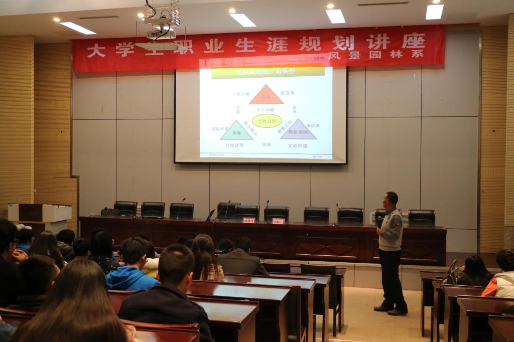 12月1日下午,风景园林系在研发楼报告厅举办了职业生涯规划专题讲座。湖州温泉高尔夫俱乐部有限公司副总经理徐康水、人事总监殷琪玮应邀主讲。 讲座中,徐康水经理用风趣幽默的语言阐述了职业规划的意义以及怎么去规划等相关知识,并与在场同学热情互动,答疑解惑。殷琪玮总监与大家分享了自己的经历,凡事欲求成功,必要付出代价,只有努力坚持才会成功。同学们聆听讲座后纷纷表示受益匪浅,今后将努力用今日所学为自己的职业规划添砖加瓦。