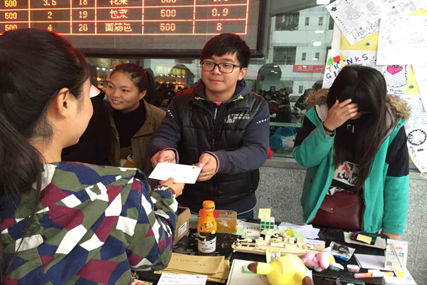 本次活动分为“爱心中转站”、“感恩有缘人”、“纸花表恩情”三部分。活动中,工作人员热心的帮助同学们传递感恩贺卡,爱心礼物,并邀请过往同学参与扎气球送祝福活动,同学们纷纷加入其中争当“有缘人”。此外,同学们还通过折纸花表恩情的形式,对身边朋友、同学以及那些默默奉献的清洁工、宿管阿姨、食堂阿姨表达自己的感谢之情。一张张制作精美的手抄报、贺卡,汇聚着创作者一份份感恩的情怀;一朵朵亲手制作的纸花,表达了同学们对师长、同学、朋友的感激之情。