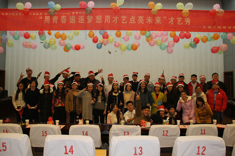 12月24日晚,生物工程系分团委在图书馆报告厅举办了“用青春追逐梦想 用文艺点亮生命”才艺秀。 本次才艺秀节目多多,精彩不断, 百花齐放,尽显青春本色。动感的Cosplay秀开场带动了现场的气氛,独舞《白狐》,歌曲联唱《我们新疆好地方》、朗诵《与妻书》、小品《单身情歌》、吉他弹唱《真的爱你》、《盛夏的果实》让现场的观众沉浸在欢乐的海洋。压轴节目机械舞《popping time》征服了评委的眼球,夺得了本次才艺秀的冠军。