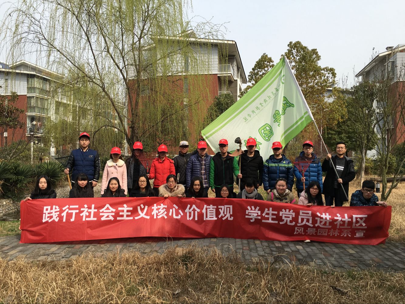 3月10日下午,风景园林系学生党支部组织学生党员赴句容市东门社区开展了“践行社会主义核心价值观,学生党员进社区”雷锋月主题活动。 大家不怕苦、不怕累、不怕脏,拿起修枝剪、园林割灌机等工具,运用上课所学专业知识,集中修整了东门社区的小区绿化,并清理了小区广场的地面垃圾。支部负责老师表示,今后学生党员的队伍将会继续发扬雷锋精神,从一点一滴、一言一行做起,用科技服务社会,努力做社会主义核心价值观的模范实践者。