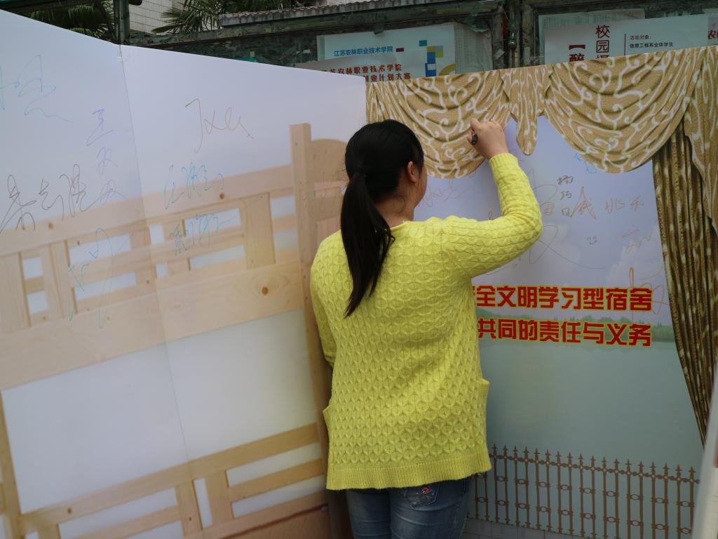 为积极响应学院文明月活动号召,风景园林系于4月25日中午在食堂门口开展“画说安全·温馨宿舍”文明活动月系列活动。 活动通过现场展示的方式宣传安全常识。“漫画天地”中通过一幅幅形象生动的漫画描绘夜不归宿、晚归、用大功率电器等常见宿舍问题带来的安全隐患。“我爱我家”中,同学们来到“漫画宿舍”签字承诺“创建安全文明学习型宿舍是我们共同的责任”。而在“绿野仙踪”中,同学们纷纷领取了装扮宿舍的小绿植。 本次活动增强了同学们的安全防范意识,积极推动了宿舍文化的发展。