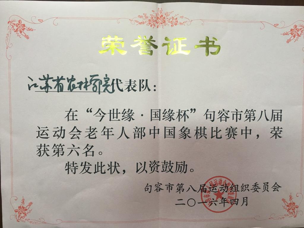 4月23-24日,在四年一次的句容市第八届运动会象棋比赛中,永利官网代表队分别荣得职工部和老年人部第六名。这是永利官网代表队首次进入前六强。