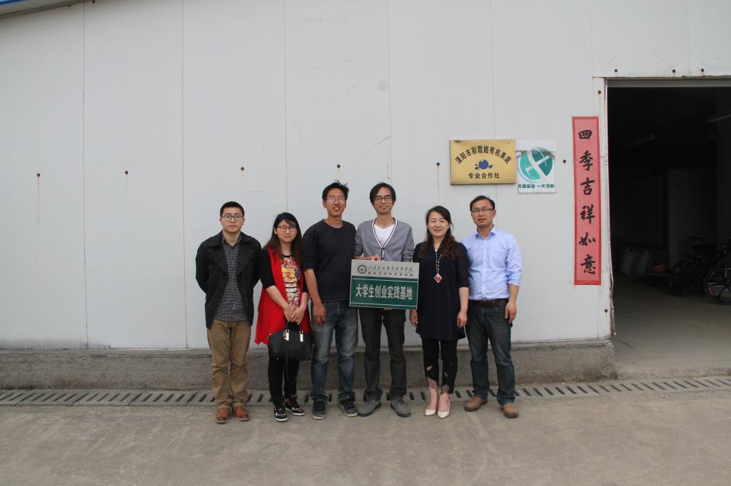 在溧阳“彩霞姐有机果蔬专业合作社”,一行人通过基地参观、生产销售模式调研等,详细了解了合作社创办人王怡清、张泉、刘伟这三名校友的相关情况,并与他们交流了学生就业、创业合作等事宜,举行了实习、创业基地的挂牌仪式。