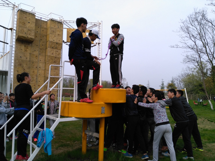 为备战新一届学院田径运动会,增强队员团结精神、拼搏精神,4月7日,茅山校区组织田径队队员,赴茶博园素质拓展中心开展素质拓展训练。 本次活动设置了极限10秒钟、盲人要球、极限攀岩和信任背摔等多个训练项目,看似简单的游戏,却揭示了抽象而深刻的道理,队员们在这种“体验式学习”的过程中,增进了彼此间的信任感、责任感,增强了团队合作能力和在校运会上再创佳绩的信心。