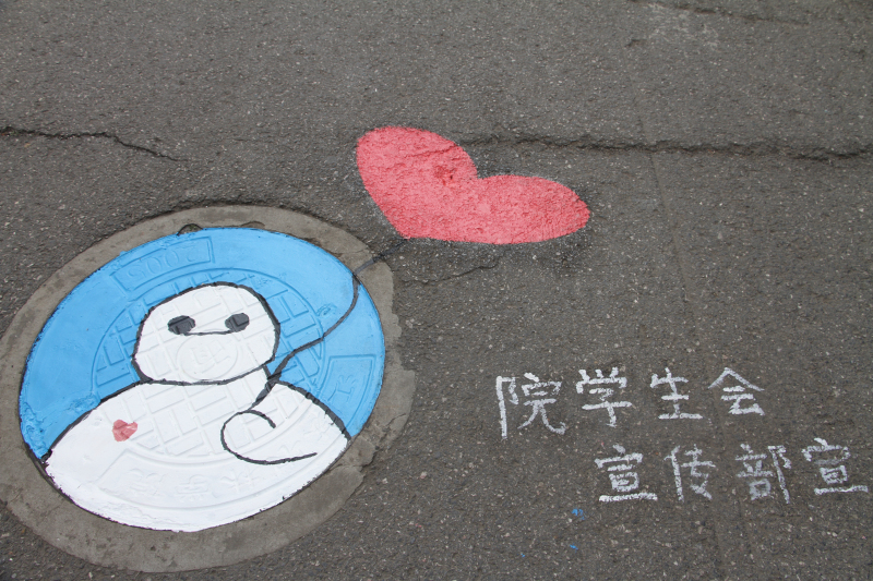 为了弘扬校园文化,培育文明、和谐的社会主义核心价值观,近日,院学生会心育部和宣传部的同学们利用空余时间给学生宿舍区的井盖们披上了“新衣”,各式各样融合了“心理健康”和“校园文明”等正能量元素的涂鸦让校园变得青春活力。 此次活动旨在将创意涂鸦作为趣味文化融入到学生养成教育之中,用文化彰显文明,用文化美化校园。“飞扬农林心,彩绘农林情”,每一幅涂鸦作品都展现了新文明、新风貌,时刻提醒同学们关注并积极参与到校园美化行动中来,用积极乐观的生活态度和健康文明的生活方式,为校园文化增色添彩。