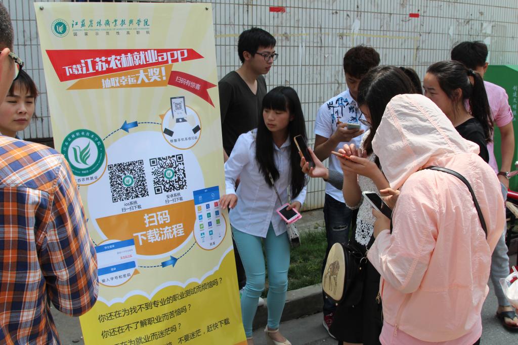5月11日中午,院学生工作处就业创业指导中心在食堂门口举办了“江苏农林就业APP”推广活动。