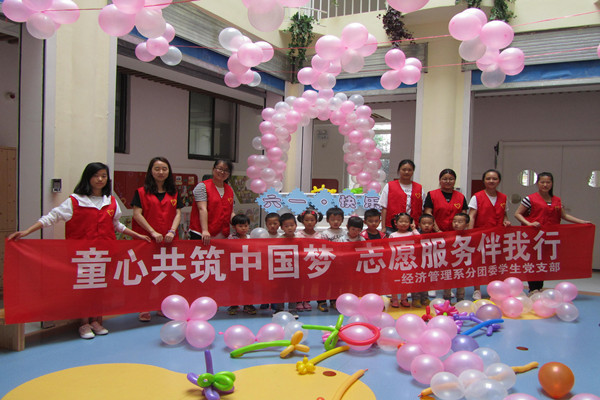六一前夕,经济管理分团委、学生党支部组织志愿者在金宝宝幼儿园举办了“童心共铸中国梦,志愿服务伴我行”志愿服务活动。