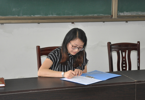 15茶艺班冼诗棋同学代表所有考生发言,承诺要认真努力学习,积极复习迎考;自觉自律,维护考场纪律;自尊自爱,参与公平竞争;校区辅导员王建才老师代表所有监考教师发言,承诺在监考期间,认真监考,严于律己,不徇私情,照章办事,一丝不苟,实现“零差错,零失误”。15财务管理班毛兰·艾海提同学和辅导员封寒老师分别代表考生和监考人员向校区管委会郑重签署了《诚信考试承诺书》和《监考承诺书》。