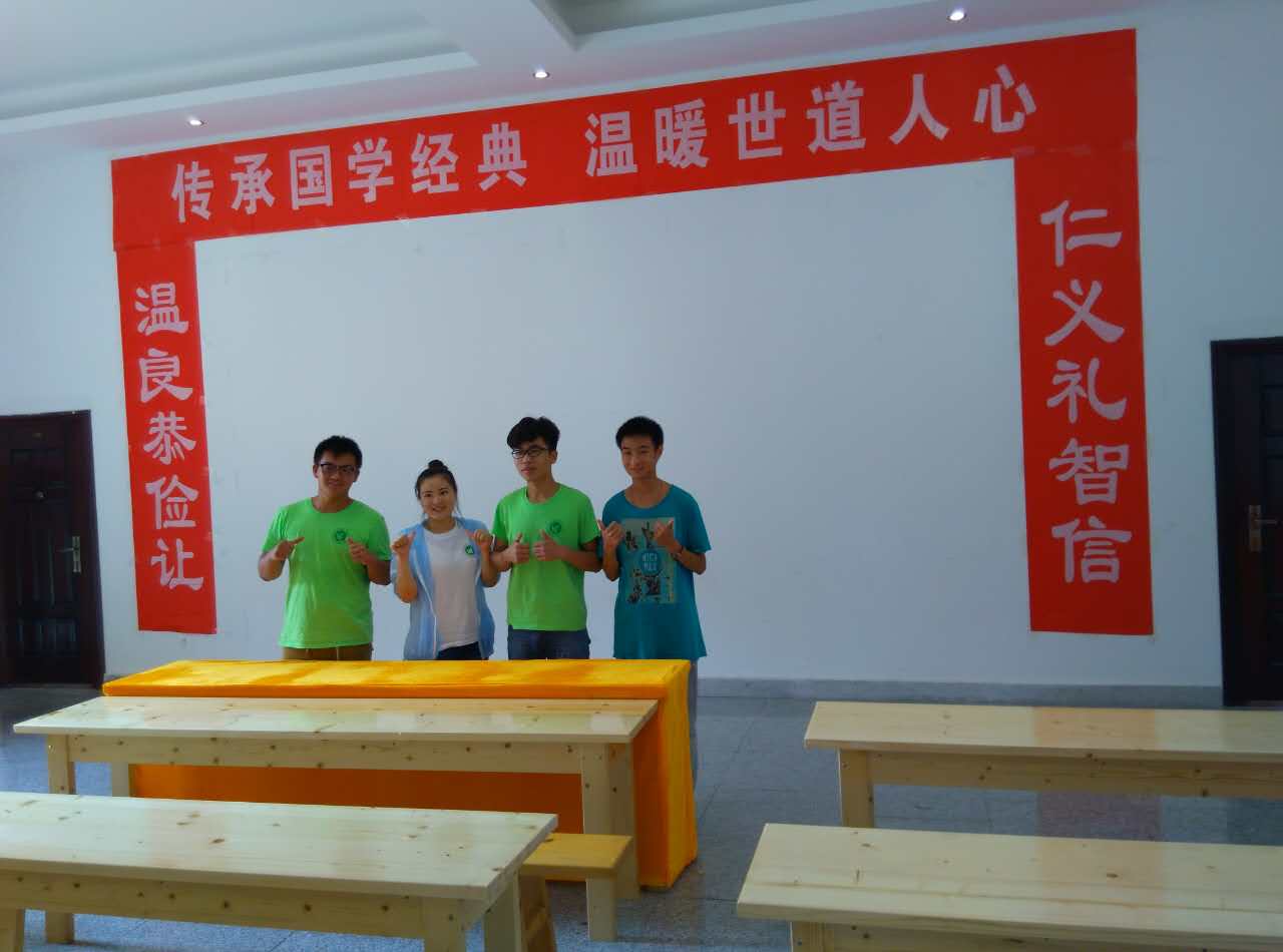 国学夏令营小分队一行四人,前往睢宁县水月禅寺参加为期13天的第一届国学夏令营志愿服务活动。活动开展期间,志愿者们整理打扫夏令营所需教室、寝室以及活动场所等,带领营员们一起晨读,练习太极拳,学习《弟子规》、《三字经》等国学经典作品,陪伴54名营员度过轻松愉快的时光。志愿者们认真负责、有担当,受到主办方和家长的一致好评。