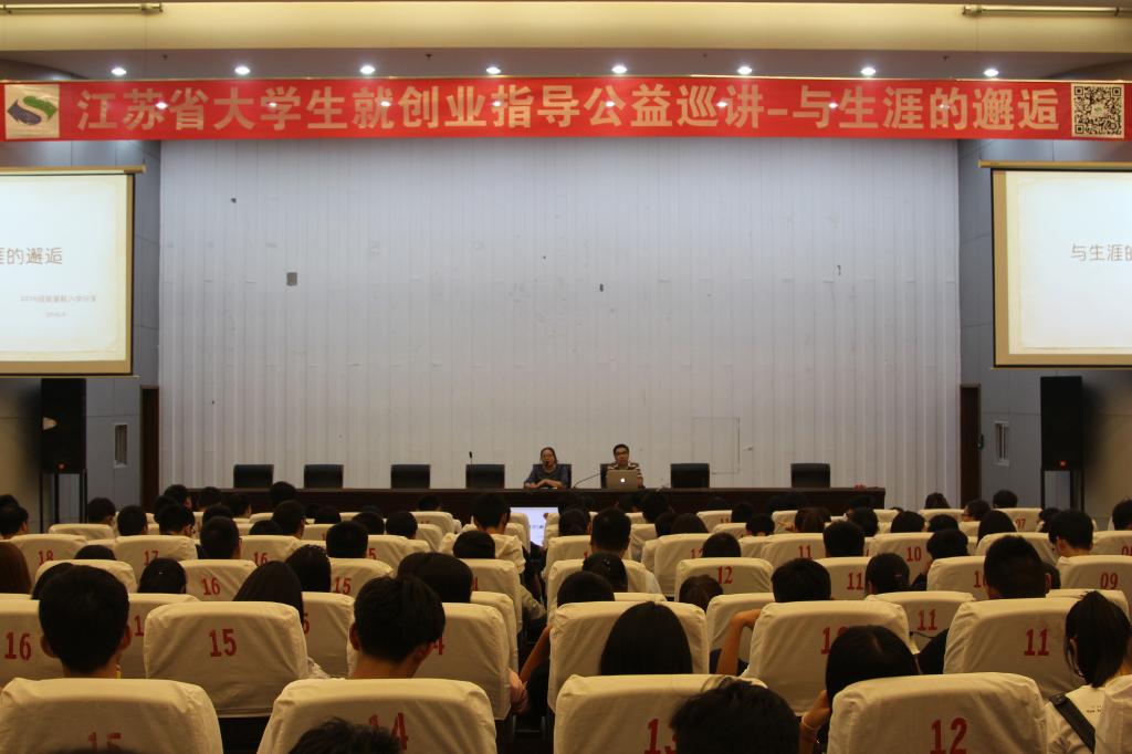 为帮助新生尽快适应大学生活,树立职业生涯规划意识,9月22日下午,由江苏省高校招生就业指导服务中心主办,永利官网就业指导中心联合承办的“2016年高校就创业指导公益巡讲—与生涯的邂逅”在图书馆报告厅举行。江苏省教育厅大学生就业指导专家、国家级职业指导师培训讲师郭建勇老师应邀为永利官网2016级新生做了题为“与生涯的邂逅”的讲座。