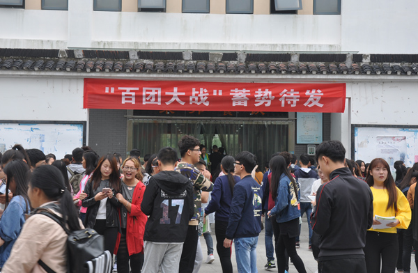 10月12日中午,在茅山校区社团联合会的统一组织下,“百团大战”蓄势待发,一年一度的社团招新活动在食堂门口拉开帷幕。
