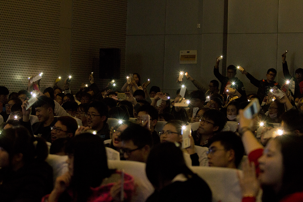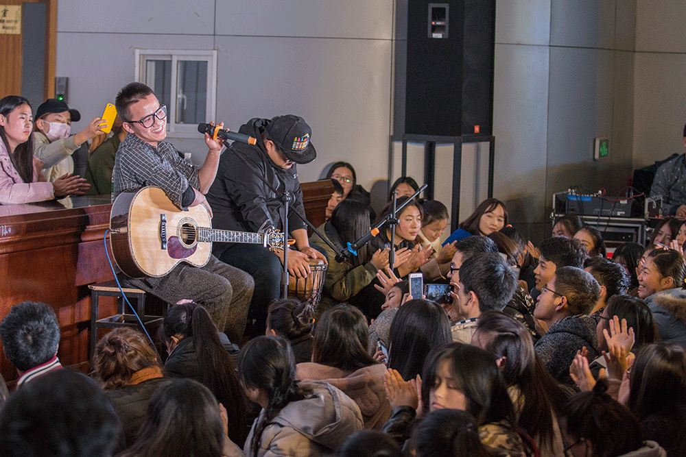 现场座无虚席,两个小时的音乐会,掌声、笑声不断,歌手和同学们互动融洽,气氛温馨和谐。在优美的民谣中,一个个打动人心的故事,感染着我们的青年学子,鼓舞着我们的青年学子对生活和未来的不懈追求与热爱。