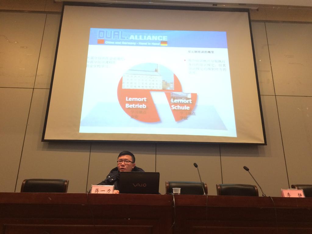 12月28日,应学院的邀请,德国职业教育联盟中国区外联部主任蒋一力先生来永利官网研发楼报告厅作讲座,吸引了学院众多师生的参与。永利官网高职教育研究所李静所长主持了讲座。