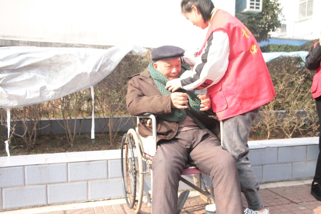 “情丝密密缝,暖暖度严冬”,志愿者们将之前针织好的围巾细心的给每位老人佩戴好,陪老人们聊天,给老人们修理指甲,帮老人们打扫房间卫生,与老人们一起运动踢毽子……志愿者们用爱心和耐心让老人们感受到了久违的温馨。