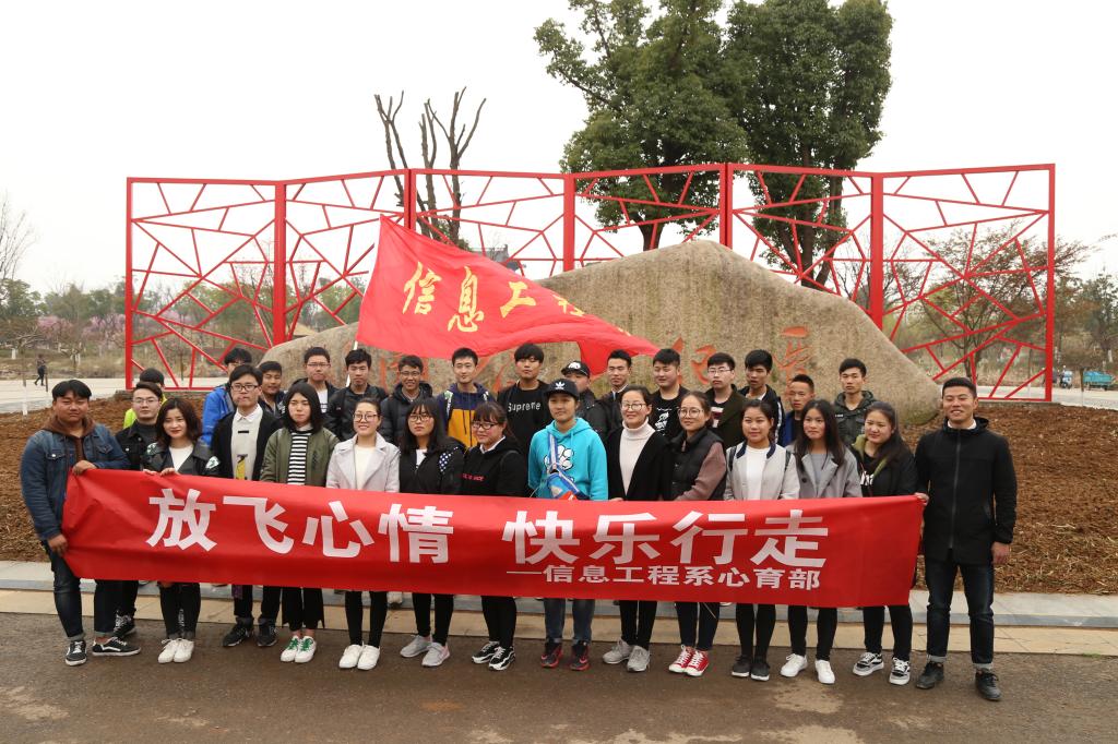 信息工程系心育部于3月18日开展了第二届“放飞心情,快乐行走”主题活动。本次徒步目的地是句容市贾纪山公园,往返路程10公里左右。36名师生从校园准时出发,徒步1个半小时后,到达句容市贾纪山公园。一路上,大家交谈着学习的困惑、生活的感悟和工作的经验。欢歌笑语不断,尽显了团队力量和徒步运动的魅力。在贾纪山公园进行的“追忆童年,放飞心情”的户外体验活动中,师生们放风筝、丢沙包、吹泡泡、跳皮筋,大家一起找寻童年的记忆。