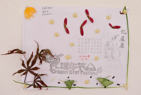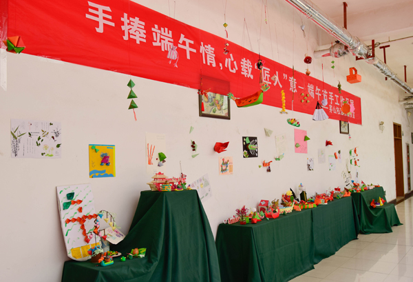 手工作品丰富多彩,有以端午为主题的手抄报,有用各种材料制作的端午龙舟、粽子,有同学们精心编制的五彩手链和端午蛋兜等作品,每一个作品都饱含了各自的寓意,结合端午传统节日的习俗特色。本次活动让更多的同学在亲自动手体验中,充分感受我国传统文化的魅力,陶冶学生的情操,享受传统风俗带来的温馨和快乐。