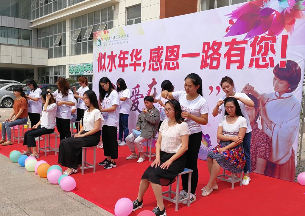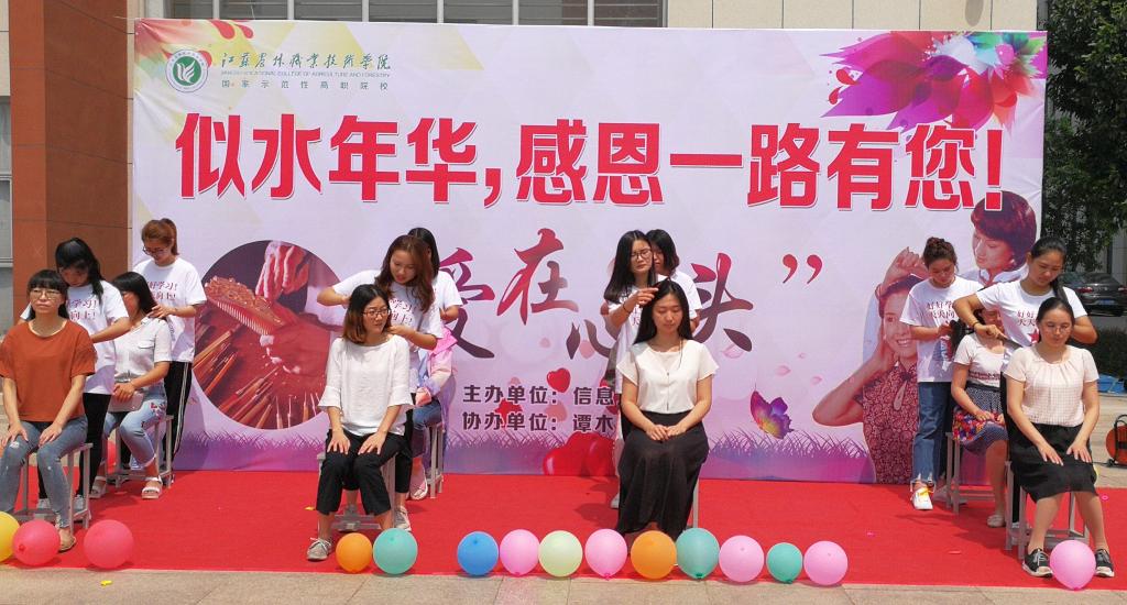 9月8日中午,信息工程学院分团委联手句容市谭木匠在图书馆门口开展了“爱在心头”为恩师梳头活动,活动中信工学子用自己的方式为恩师献上一份特殊礼物,表达他们的感恩之情。