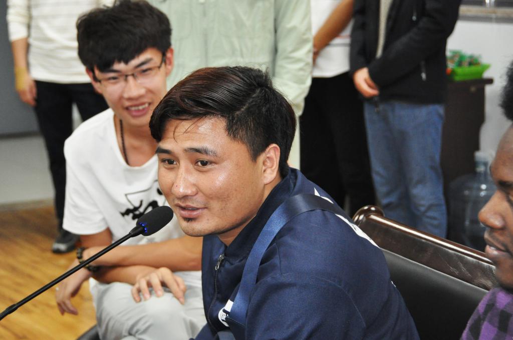 学院肯尼亚留学生李小龙、何森,老挝留学生科比发言