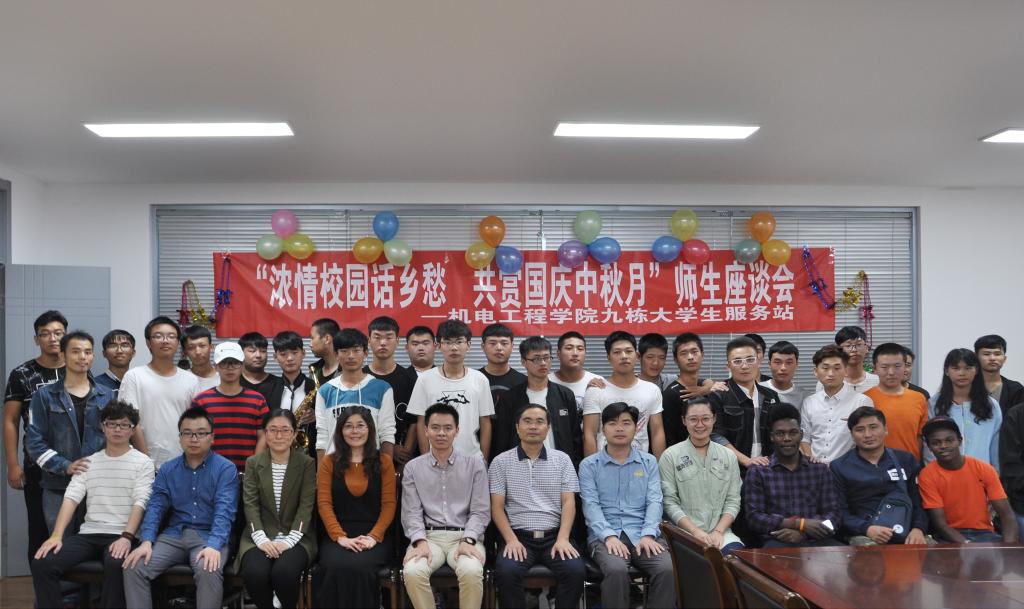 9月30日下午,机电工程学院举办了“浓情校园话乡愁共赏国庆中秋月”师生同乐会,学院院长刘永华,党总支副书记熊伟、李杨和17级新生班主任,以及省内外留校新生代表、学院肯尼亚、老挝等外籍留学生共同参加了本次活动。