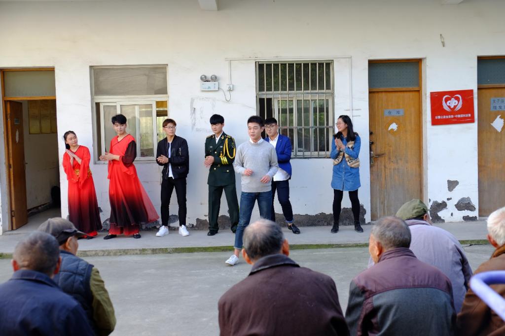 10月25日下午,机电工程学院“益动社”20多名志愿者们,来到了边城镇敬老院,与老人齐聚一堂,送去演出和慰问,提前与老人们欢度重阳佳节。