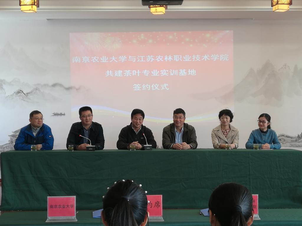 10月25日,我校与南京农业大学举行“共建茶叶实训基地”签约仪式,我校党委副书记王润贤,茶与食品科技学院院长曹正、南京农业大学园艺学院党委书记陈劲枫、南京农业大学茶学系主任陈暄、南京农业大学相关任课教师、永利官网相关部门负责人及部分茶叶专业学生出席了签约仪式。