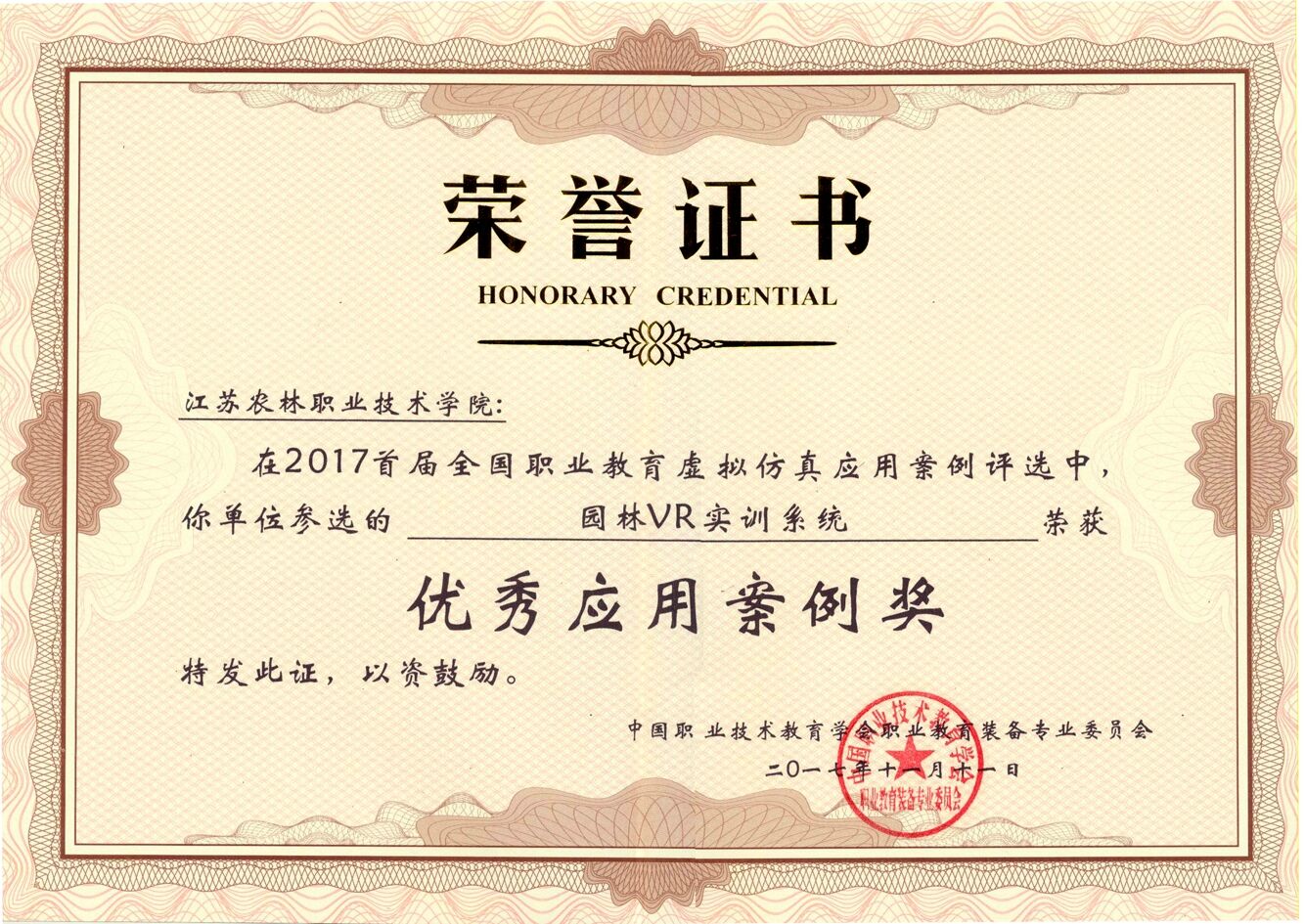 来自全国企业、院校的67件作品参加了此次评选,经过网络初评,现场演示答辩,共选出26个优秀案例,永利官网自主研发的 “园林VR实训系统” 以优异的成绩荣获首届全国职业教育虚拟仿真应用案例 “优秀应用案例奖”。