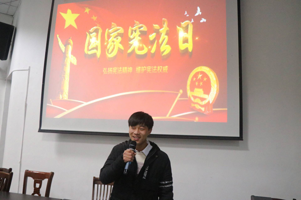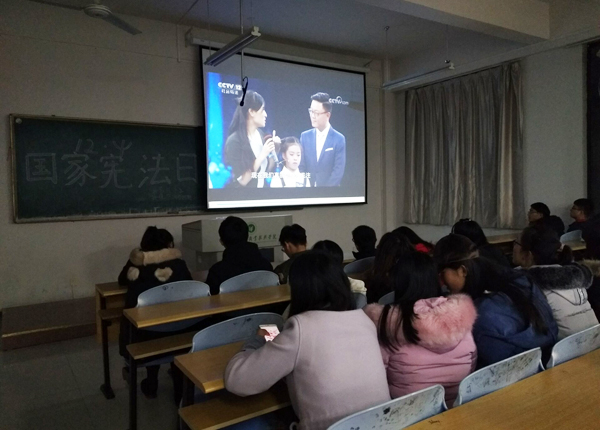 12月3日下午,17茶艺与茶叶营销班组织学生自主收看中央电视台社会与法治频道播出的《第二届全国学生“学宪法讲宪法”活动团体总决赛》,并于12月4日上午组织学生登录普法网观看和参与直播活动,同步开展宪法学习教育。12月6日下午,17园艺技术(单)、17环评在明亮楼A203召开“大力弘扬法治精神,维护自身正当权益”宪法宣传日主题活动。通过观看视频,同学们不仅看到一些社会底层人物利用宪法改善自身命运的故事,也学习了基本的法律法规,知道如何运用法律武器保护自身权益。12月6日晚7点,17工程造价专业的同学们在主持人的带领下观看视频《宪法的精神法治的力量》,了解法治榜样事迹,同学们依次上台,通过图画、文字等方式描述出自己心中的宪法,现场氛围活跃,效果显著。