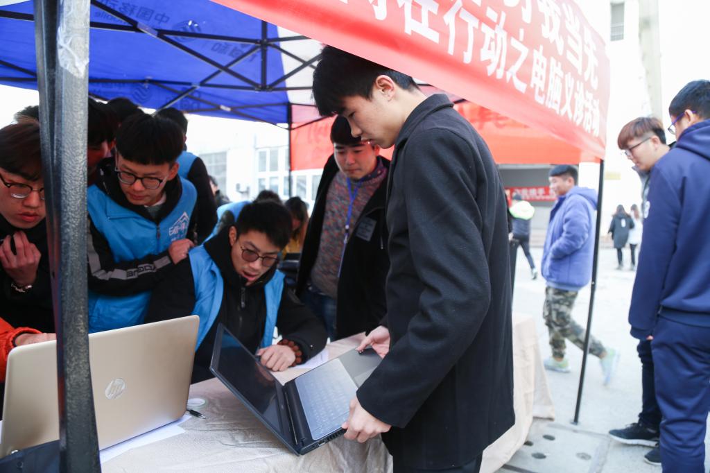 活动现场,在支部学生党员的带领下,IT精英协会的志愿者们运用专业知识,现场维修电脑50余台,解决各种电脑问题100多个,为全校近百位同学提供无偿服务。
