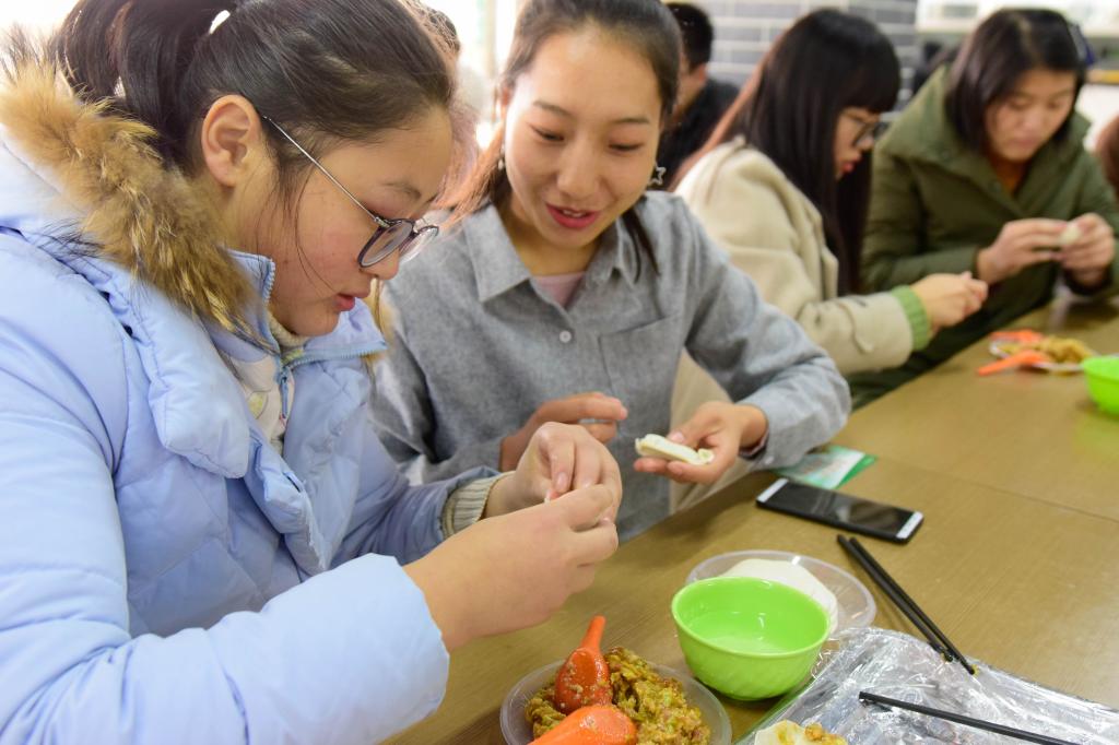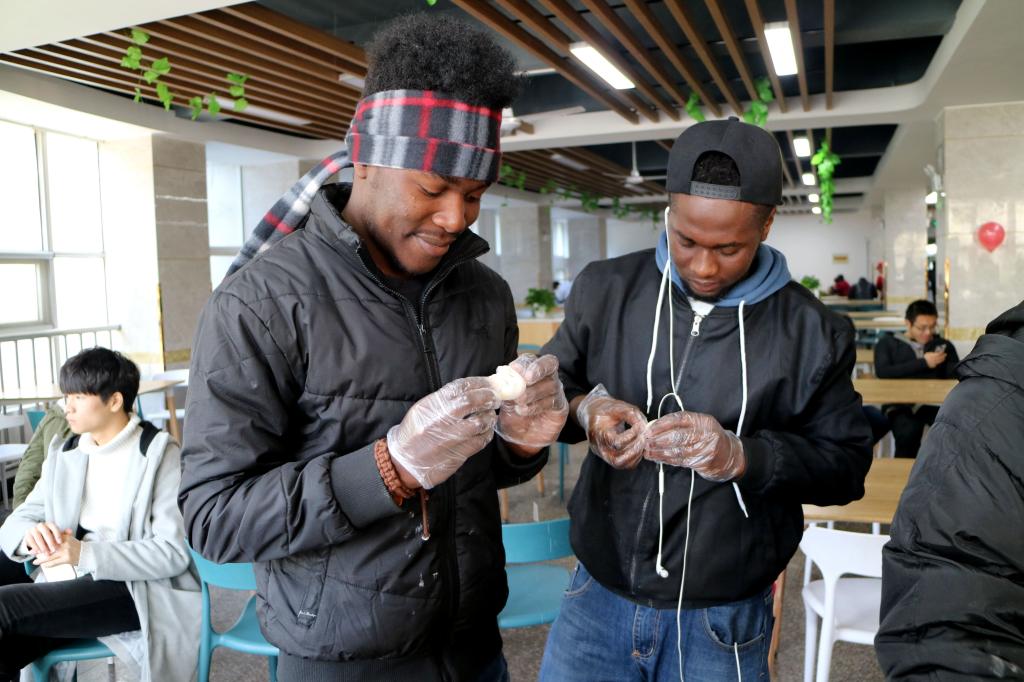 12月21日,风景园林学院举办“过暖情冬至,饺四海之友”主题活动,该院学生和部分外籍留学生参加了活动。活动中,学生们亲手包饺子,留学生们认真的观看学生的包饺子分解动作,虽然不是很熟练但是经过练习终于能包出相对标准的“饺子”了。在等待饺子煮熟的时间里,中外学子还开展了书法交流会,整个活动笑声不断,温情满满。