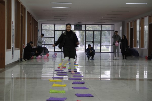 1月3日下午,学院团委在体育馆一楼举行了趣味知识竞赛,10个班级的50名同学组成十支队伍参赛。比赛共有四个环节,每个环节的终点均设置了十九大知识速答,参赛队员必须用接力的形式完成“托球拍”、“强压跑”、“跳绳跑”、“夹球跑”,并回答完抽中的题目,最终以接力时间和答题正确数来决定最后的名次。
