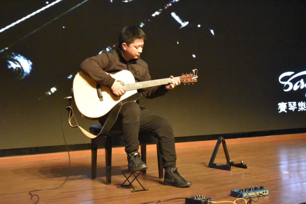 陈啸老师弹奏了的开场曲动听婉转,让观众们瞬间安静下来,细细聆听。他和他的学生带来了《叙事曲》、《寂静岭》、《白羊号角》、《成都》等曲目,旋律柔和,细水长流,缓缓浸润观众的心田。演奏间隙,陈啸老师还为现场的吉他爱好者讲解了一些弹奏技巧。